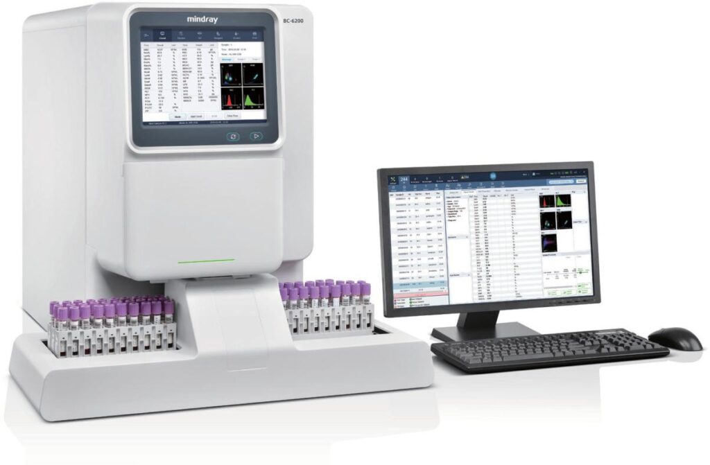 High throughput – up to 110 tests/hour with 5-part differential. SF Cube technology for accurate WBC, RBC, and PLT analysis. NRBC and RET detection with Immature Granulocytes (IG) reporting. Compact design with easy operation and intuitive touchscreen. STAT sample support and continuous autoloader for smooth workflow. Large data storage with LIS/HIS connectivity for smart lab